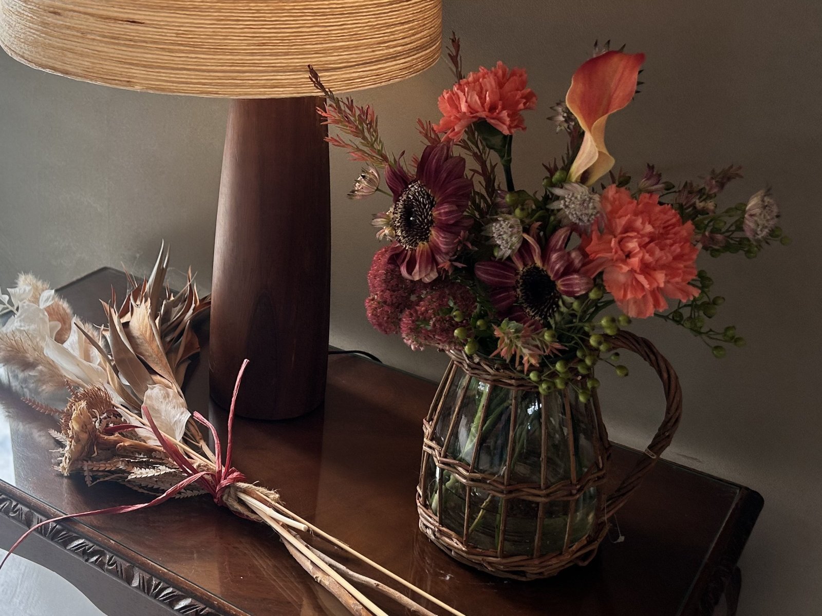 この美しいブーケは、厳選された季節の花々を組み合わせ、心を癒す温かさや穏やかさ、そしてどこか懐かしさを感じさせるデザインに仕上げました。忙しい日々の中で、ほんの少しの安らぎを感じることができるアイテムです。自然の優しさを大切にしたノスタルジックな色合いが特徴です。結婚式、誕生日、記念日、あるいは大切な方へのギフトとしても最適です。また、自分へのご褒美としても、一日の疲れを癒してくれる存在になることでしょう。